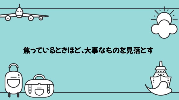 焦りに飲まれて判断しないこと。